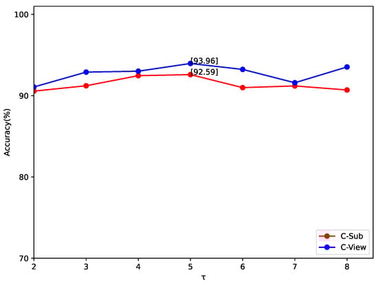 By considering the effect of the parameter on the results, we compare our model in with several approaches, and the comparison results for the C-Sub and C-Set protocols on the PKU-MMD are shown in Table 5. Specifically, the proposed J-Swin-SFMCB-I with joint training can be observed to outperform the previous work J-ResNet-CMCB [32] by 1.2% and 0.9%, respectively. Furthermore, the proposed J-Swin-SFMCB-II model achieves recognition accuracies of 92.6% and 94.0% which outperforms all compared methods on the C-Sub and C-Set protocols, respectively.