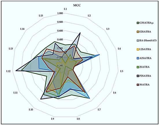 - The log-linear analysis proposed by [30] is able to produce the best attribute selection in A2SATRA and to obtain instances of positive outcomes, with MCC = > 0.5 in this research analysis. As a result, the MCC values of the five datasets in the model are more than 0.5 among the 15 dataset (L4, L7, L9, L10, and L12).