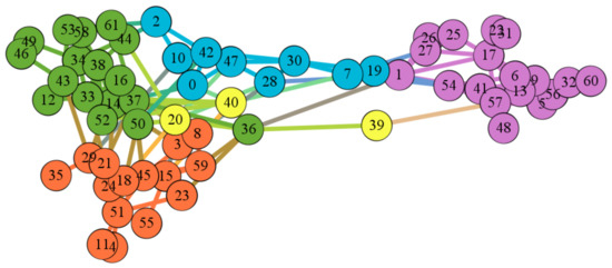 - Newman, M. Modularity and community structure in networks. Proc. Natl. Acad. Sci. USA 2006, 103, 8577–8582. [Google Scholar] [CrossRef]