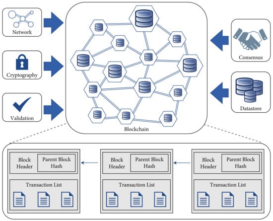 The aforementioned aspects motivate the proposal of a BCT-based IoT information exchange system. Achieving data sharing while maintaining data security is the goal of IoT information-sharing security. Information security encompasses not only the previously mentioned aspects of data protection, but also its authenticity, traceability, non-repudiation, and dependability. When it comes to fending off external attacks, making sure that block data is unforgeable and unalterable, and getting beyond double-payment concerns, BCT technology depends on the massive computational power created by consensus methods like Proof of Work (PoW) of distributed networks. Simplified Payment Verification (SPV) is a feature of many BCT systems, and it relies on Merkle trees and variations thereof to verify transactions without requiring users to keep the whole BCT. Because of the Merkle tree, BCT technology may be used on IoT devices without requiring a full copy of all blocks to be stored locally. The information stored in a BCT is encrypted using cryptography. Before being included in the block, the information must be checked for accuracy by every node. The BCT network’s nodes may be openly queried after being written to, eliminating information advantages and lowering trust costs. Figure 2 shows the security mechanism for BCT technology over cloud computing platform. The immutability and precision of the BCT’s records protect IoT users’ personal information and assets. The decentralized BCT IoT nodes are immune to standard DDOS attacks. The current study offers a BCT-based IoT information-sharing security architecture, which collects and transacts source data to construct a system with matching source data and interaction security. IoT is often broken down into three distinct parts—the perception layer, the transmission layer, and the service layer. The architecture incorporates a dual chaining approach, which consists of a data and transaction BCT. Certain attributes of the proposed chaining mechanism are sent to the centralized computing paradigm because of the restricted resources of specific nodes of the IoT. Fog computing is located near the IoT terminal node or the data BCT component; cloud services are more focused on the application layer. Public chains constitute the backbone of most existing BCT applications. The increased trustworthiness of the public chain comes at the expense of identity and data privacy, since any node may join the BCT network and keep the books. Conspicuously, the current study integrates public and private chain solutions. The public BCT is deployed in several IoT use cases. Moreover, the scenario makes use of alliance chains in several contexts. Alliances are formed between different sections of the same industry. Data on the BCT can only be updated by alliance members. Nodes that are not permitted cannot connect, and private connections are used to connect local nodes. Only approved nodes are allowed to store data on the BCT, making it almost impossible for other parties to access the ledger. However, the transaction BCT can encompass either the alliance or public chain, depending on the certain applicability domain, while the data BCT is only utilized for data accumulation from the source. It ensures that the time-sensitiveness and security needs are better than with the transaction BCT.