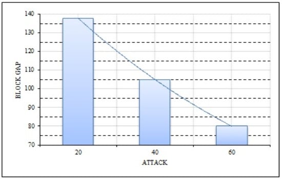 As seen in Figure 4, the block gap has an exponentially decreasing effect on the attacker’s tampering success rate. Concurrently, it is discovered that while the block gap is constant, the attacker’s forging capability (the increase in computing power) generates pseudo-power for the block. If an attacker controls more than half of the network’s computing power, they may recalculate the verified blocks or prevent other nodes from producing new blocks, thereby realizing a double payment and blocking the confirmation of the transaction. The node’s private key may be safeguarded through a method of secret sharing, which prevents the key from falling into the wrong hands. The node private key is split into n shares, each of which is kept secret by one of the participants; the private key can be rebuilt only with the cooperation of participants. Each participant in the secret sharing process identifies its private key share with its own identity and utilizes its private key as the secret share, allowing for simultaneous secret distribution without any pre-processing. Every participant may check whether the share given by another participant is legitimate during private key reconstruction, eliminating the requirement for an actual secret share and allowing for faster processing times without compromising security.