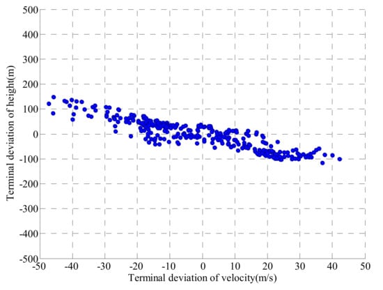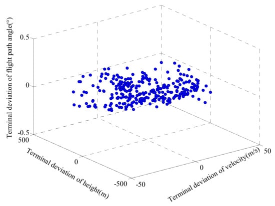 where the subscript refers to the final value and the superscript refers to the desired value. , , and represent the deviation thresholds of the terminal altitude, velocity, and flight path angle, respectively.