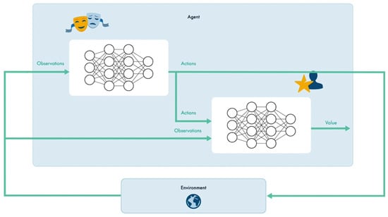 - Direct control. The DDPG agent in this case, is the only one in charge of providing the duty cycle to the converter without counting on other controllers or without being itself the one that provides help to other controllers as in the paper [36]. In this way, the computational cost is lower and the system is simplified.