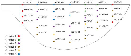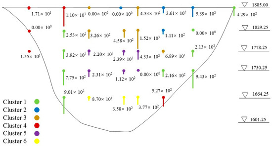 To further verify the applicability of the model proposed in this paper, Xiaowan dam was taken as an example; measuring points in the dam body were clustered and the panel data model was used to impute missing data. The clusters of the measurement points on Xiaowan dam are shown in Figure 19.