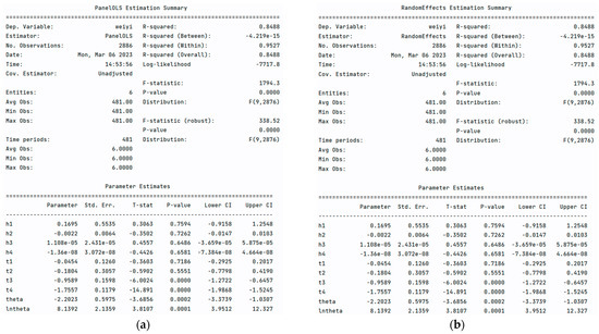 Comparison of the fixed effects panel data model and the random effects panel data model for Cluster 6 of Jinping−Ⅰ Hydropower Station: (a) fixed effects model; (b) random effects model.
