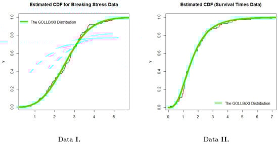 and is the PDF of the BrXII model with parameters , and . By integrating (6), the CDF of the GOLLBrXII model is
