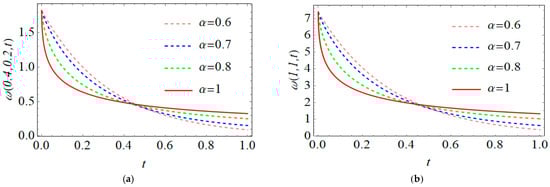 where , is the -th time-fractional derivative in the Caputo sense, with and when ; Equations (1) and (2) indicate damp wave equations, and in the case of , Equations (1) and (2) denote the telegraph equations. The parameter represents the damping coefficient, which is a measure of the dissipation of energy in the medium. A non-zero value of indicates that the wave experiences some damping, which can be due to factors such as viscosity, friction or heat conduction. The parameter represents the nonlinearity coefficient, which is a measure of the strength of the nonlinear interaction between the wave and itself. Overall, the values of and determine the behavior of the wave in the medium and are often obtained from experimental measurements or via theoretical modeling of the system under consideration. The model has been widely employed in wave processes as well as signal analyses for the transmission and propagation of electrical impulses. This algorithm is used in reaction–diffusion designs in various areas of science and engineering. Additionally, in the field of medicine, some scientists have found the fractional model of the telegraph equation in a peristaltic flow system [22]. The diverse applications of this sort of model in biomedical and aerospace sciences have drawn scientists to solve the time-fractional problem. The classic PDEs are the specific instances of the fractional-order PDEs as they can be collected by letting the arbitrary-order become derivative to the classical order. The reaction of the fractional-order approach eventually converges to the result of the classical-order approach.