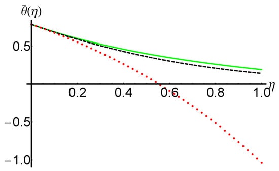 For Figure 2, Figure 3, Figure 4, Figure 5, Figure 6, Figure 7, Figure 8, Figure 9, Figure 10, Figure 11, Figure 12 and Figure 13, the OHAM solutions are displayed with thin lines and numerical solutions by dashing lines.
