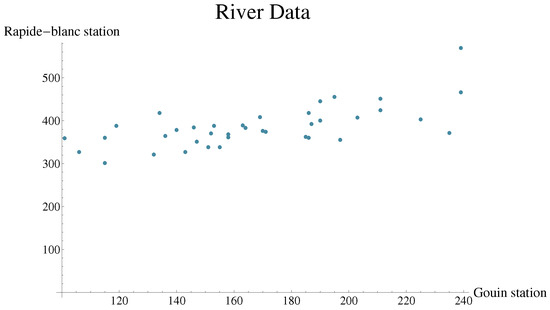 In this section, we will use the half-logistic copula to model two types of data. The first dataset considers the continuous case; the second is a discrete dataset. We chose datasets that were previously studied in the literature using other bivariate distributions (some of which are copulas). Some well-known copulas (such as Frank, Gumbel–Hougaard, Clayton, and Farlie–Gumbel–Morgenstern (FGM)) will also be fitted for the sake of comparison.