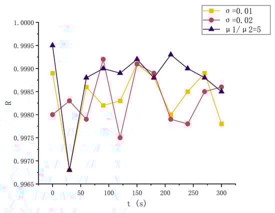 As shown in Figure 16, the trained BRBPNN neural network was used to predict the interface position of the LBM flow field, and the interface point position simulated by the FTM model is compared and verified. Under the condition of changing the surface tension coefficient and dynamic viscosity ratio, the predicted interface of the LBM is in good agreement with that of the FTM. As shown in Figure 17, its fitting degree coefficient R ∈ [0.9965, 1] once again proves that the fitting effect is very good.