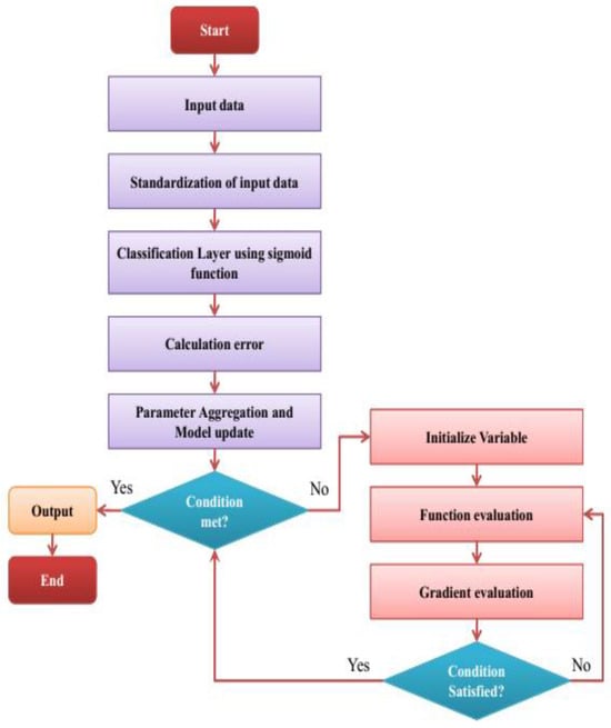 Bi-LSTM is a slower model and requires additional time for training. To address this issue, federated learning mechanisms are utilized. FL is a model of distributed learning that trains and aggregates the local models on the user side and central manager. The information that each user uploads to the server is not original data, but a sub-model trained on FL []. Despite that, the FL grants asynchronous transmission and approximately reduces the communication cost. Depending on this, the formulation of federated ML can be updated given below:
