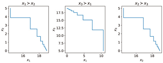 Let , be the trajectories corresponding to the initial conditions , . If Property A1 does not hold, then there exist such that . In this case, the trajectories , intersect at some point in contradiction with the solution uniqueness property. □