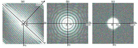 According to the type of spectra in Figure 1b,c, we conclude that Figure 3b,c show defocused images. Let us estimate the parameters of the defocused image by the “spectral method” [,,].