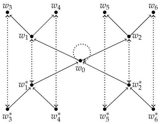 An intuitionistic frame (“I-frame” for short) is a pair where and ≤ is a partial order on W. For interpreting ∼, an involution is added into I-frames and so De Morgan frames (cf., e.g., [14,15]) are available.