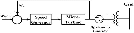 The microturbine is the prime mover for a synchronous generator for a MTGS and Figure 2 shows the general model. The MTGS is primarily based on the gas turbine model and was used in many past studies [44,45,46].