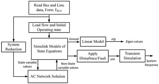 The present study performs all the simulations using Simulink/Matlab software (version 7.1, R14) [48]. In the approach, the solution of the differential equations of all system components is modeled in Simulink. Further, a non-iterative solution technique is developed to update the non-state variables such as voltage, current, and power during the simulation process.