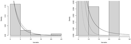 - Johnson, N.L.; Kotz, S.; Balakrishnan, N. Continuous Univariate Distributions, 2nd ed.; Wiley: New York, NY, USA, 1995; Volume 1. [Google Scholar]