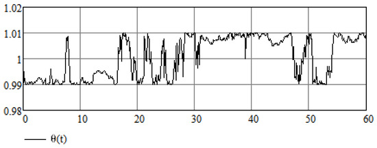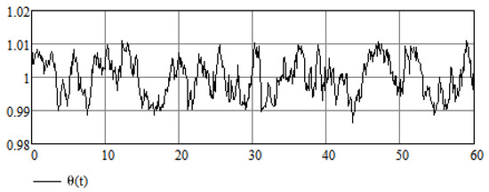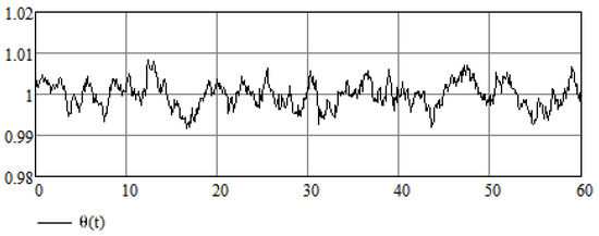 Next, we can use external forcing instead of in Equation (12), where is a random process that takes values around one, for example, , where . In this case, the uncontrolled equations take the form