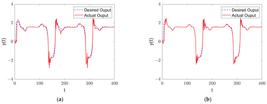 The compared simulated results for system (54) with disturbance. (a) Traditional NN PID scheme. (b) The proposed scheme.
