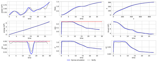 We consider the verified simulation models covering aerodynamics, propulsion, propeller–wing interaction, and dynamics developed by the Dymos team [42].