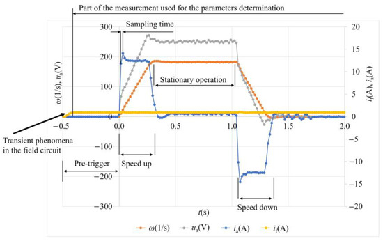 As was mentioned, only a part of the measurement after the transient phenomena in the field circuit can be used, because, with that, (1) can be eliminated for the parameters’ determination procedure, cm becomes a constant and only (2) and (3) are being solved.