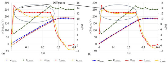 The parameters’ determination procedure showed very good repeatability, although three measured signals (speed, current and voltage) were used as the input data. In Section 6 it can be seen that, for 10 repeated measurements, the results were almost identical.