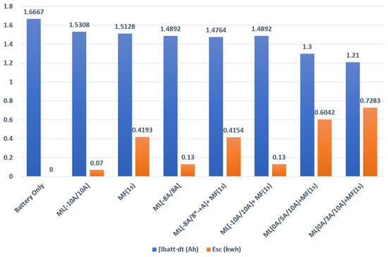 - Results in Figure 18 exhibit a 27.44% gain (in Ah) in energy exchanged by the battery for the regulation method with three battery power variable limits, contributing to longer battery life. Thus, the proposed method demonstrates the supercapacitor’s significant role in minimizing battery stress.