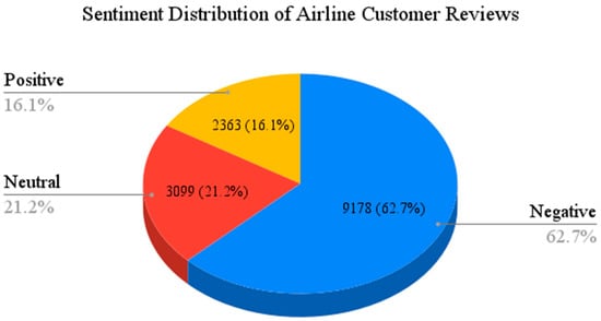 Social media platforms play a pivotal role as communication conduits between customers and airlines. Airlines increasingly rely on customer reviews and feedback as valuable inputs for assessing service quality and operational effectiveness. Also, such data provide actionable insights to guide airlines’ strategic decision-making, improve service quality and customer satisfaction, and ultimately increase profitability [1,2,3]. However, the analysis of vast amounts of existing contextual data, coupled with continual daily updates, presents a labor-intensive challenge [4]. The rapid advancements in machine learning technologies, particularly in natural language processing (NLP), have significantly facilitated the big analysis of data in recent years [5,6,7]. Various studies have shown the effectiveness of large language models (LLMs) such as BERT (bidirectional encoder representations from transformers) and GPT (generative pre-trained transformers) in analyzing and classifying the sentimental contextual information of the text [8,9]. However, limited studies focused on the applications of advanced machine learning models in analyzing airline customer sentiment.