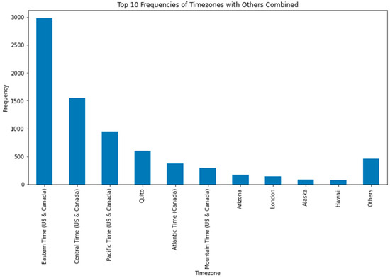 Additionally, we generated word clouds to conclude the most frequent appearance of words in the text that our models processed. Figure 4 shows that most comments are associated with airline companies. We also plotted the distribution of user time zones from our dataset in Figure 5, and most airline comments are given from Western countries. This finding indicates a potential bias in our dataset, predominantly comprising Western, educated, industrialized, rich, and democratic (WEIRD), representing only 12% of the world’s population. As a result, there is a potential limitation in applying a deep learning approach to airline customer service analysis, as the unrepresented population of the world may cause confusion in models and lead to diminished performance on sentimental comprehension.