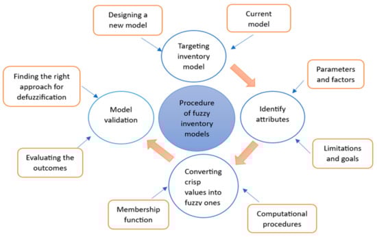 Fuzzy set theory can be particularly helpful in calibrating inventory-related data, resulting in the improved handling of real-world situations. This is especially useful when estimating demand projections and costs associated with holding, replenishing, shortages, and backorders, which can be challenging to estimate with precision in practical applications. Figure 1 displays the general frameworks of fuzzy inventory models, which are widely utilized algorithms for integrating the concept of fuzziness into models. In order to ensure effective inventory management in dynamic and competitive business environments, it is imperative to carefully consider various aspects and techniques when implementing fuzzy inventory models.