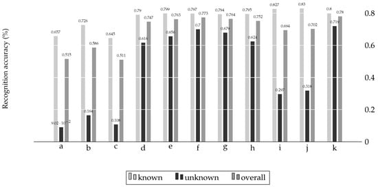 When the proposed CNN-OVRN, RCNN-OVRN, and MRCNN-OVRN perform online recognition, the samples are labeled as one of the known health states or the unknown health state (UHS). Therefore, for a comprehensive comparison with other related models, this work evaluates the recognition performance of the proposed frameworks on both known and unknown states. The quantitative metrics used for evaluation mainly include: recognition accuracy of known states, recognition accuracy of unknown states, and overall recognition accuracy.