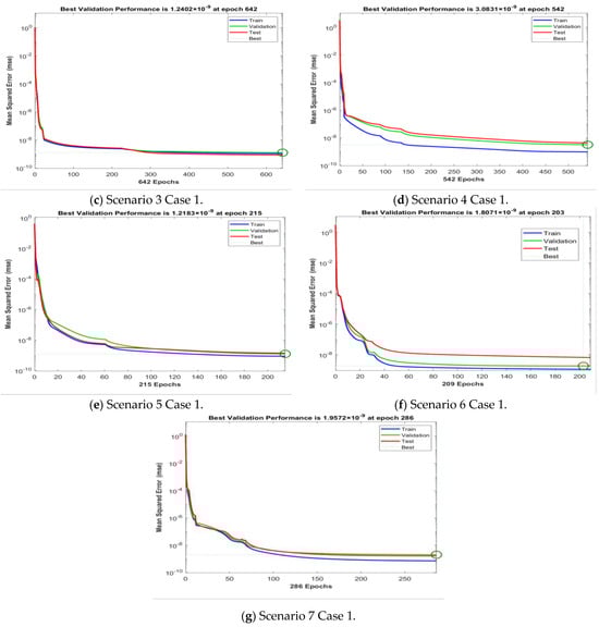 Mean squared error for the first solution of Scenarios 1–7 for Case 1 with intended LMS–BPNN.