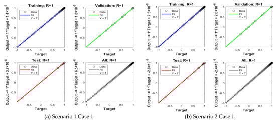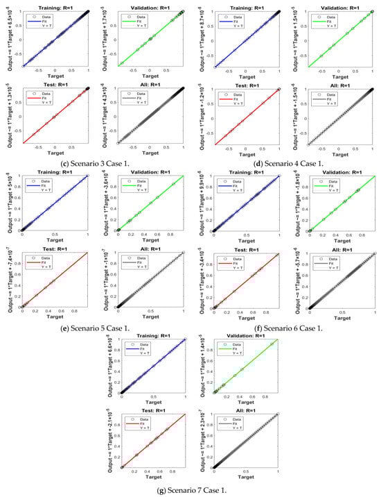 Regression analysis for the first solution of Scenarios 1–7 for Case 1 with intended LMS–BPNN.