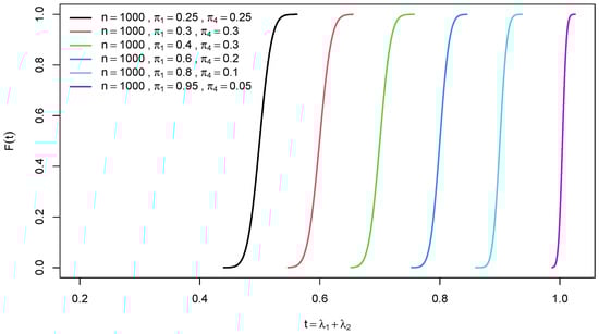 Figure 1 illustrates the graph of the probability density function for the trace of a random matrix, showcasing various diagonal probabilities and . The plot highlights that the distribution closely resembles a normal distribution when the diagonal cell probabilities are equal or nearly equal. However, it is noticeably peaked when the confusion matrix stems from a highly unbalanced machine learning task. Figure 2 supports the observations made in Figure 1, displaying a consistently increasing cumulative distribution function when cell probabilities are approximately equal, contrasted with a vertical line around 1 in cases of unbalanced data.