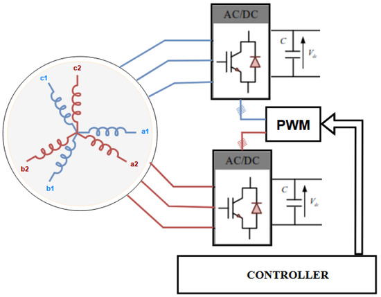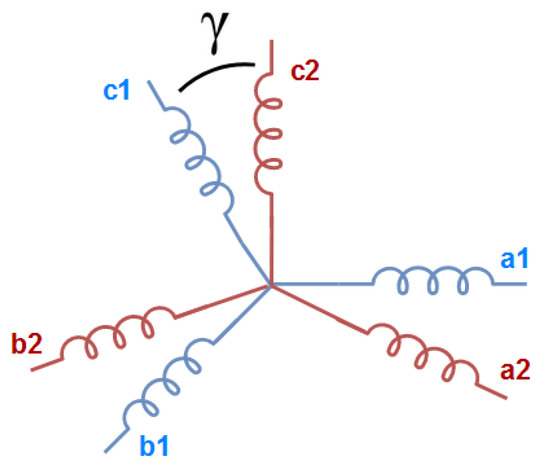 As shown in Figure 2, the double-star permanent magnet synchronous motors (DSPMSM) considered in our study are composed of two three-phase windings phase-shifted by an angle, γ.