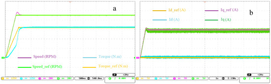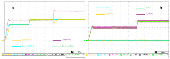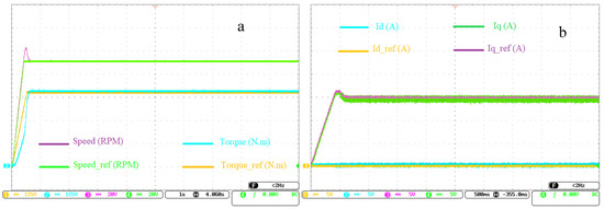 (a) Speed and torque curves, and (b) id and iq current curves for operating references variation.