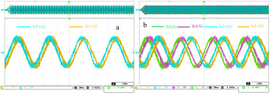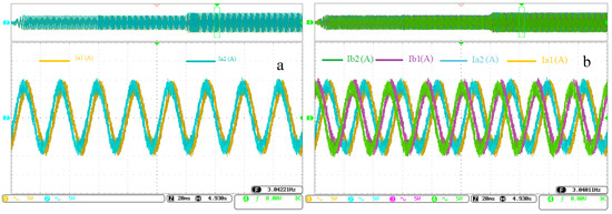 (a) ia1 current curves and ia2 current curves; (b) ia1, ia2, ib1, and ib2 current curves for operating references variation.