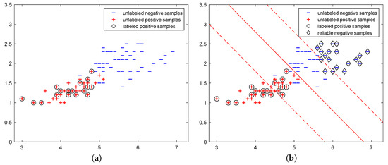 If the condition (17) holds, it implies that does not belong to the positive dataset , and we place it in the reliable negative dataset . The specific steps followed to generate the set of reliable negative examples are given in Algorithm 1.