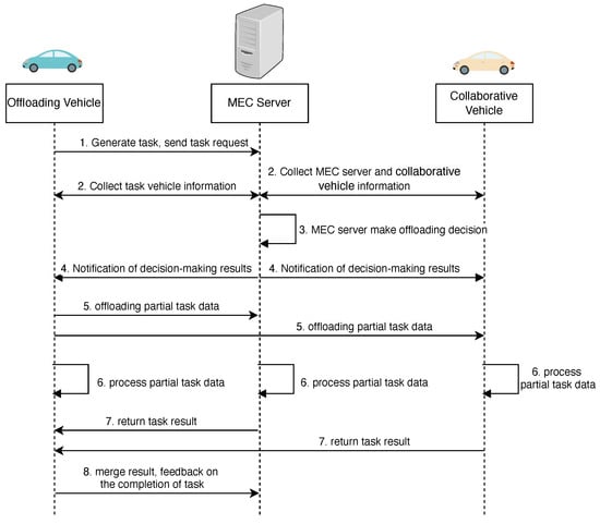 - Following the decision, the offloading vehicle divides the task and offloads portions to the MEC server and the designated collaborative vehicles.