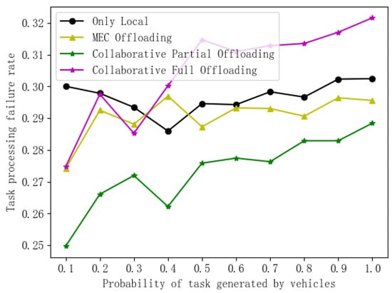 Comparison of failure rates under different task generation probabilities.