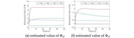 Nevertheless, if the triggered condition of the ETM with relative threshold is satisfied, it can be understood that the ETM would be triggered and the ETC input signal would be updated. Consequently, when the control signal abruptly surges, the system would suffer a significant impulse, which may deteriorate the system performance. This can be seen in Figure 3e and Figure 7e. Therefore, a prescribed performance function is introduced to restrict the tracking errors and in a given region, so as to diminish the impact caused by abrupt significant control signals. It can be also seen from Figure 3b,c and Figure 7b,c that the trajectories of the tracking errors can be effectively maintained in the prescribed region while the control signals are relatively large.