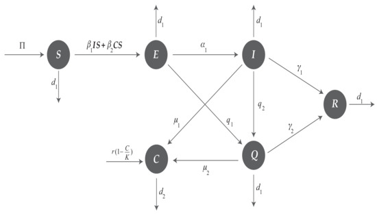 where the state variables are assumed to be real-valued continuously differential functions on , and the explanation of the model parameters is given as follows: