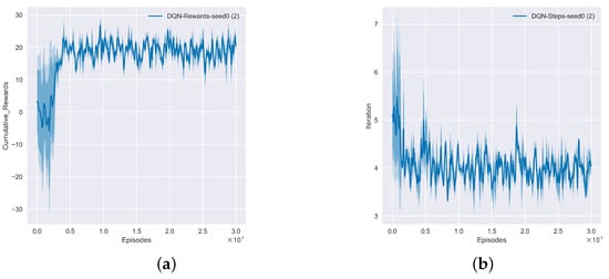 DQN algorithm operating effect based on AARF framework (a) DQN cumulative reward; (b) DQN iteration round.
