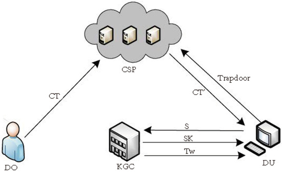 The system consists of a Key Generation Center (KGC), a Data Owner (DO), a Cloud Server Provider (CSP), and a Data User (DU). The system model is illustrated in Figure 1.