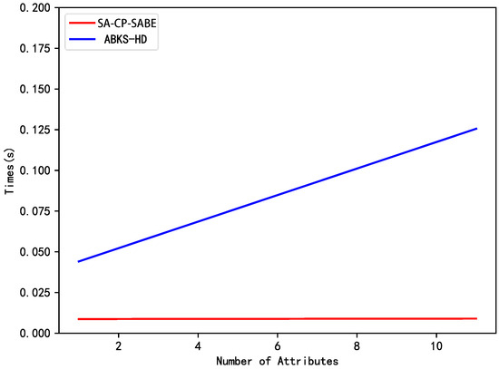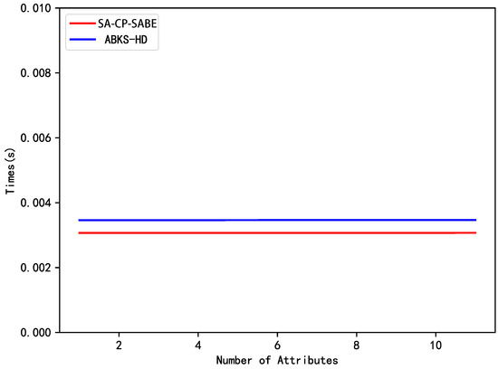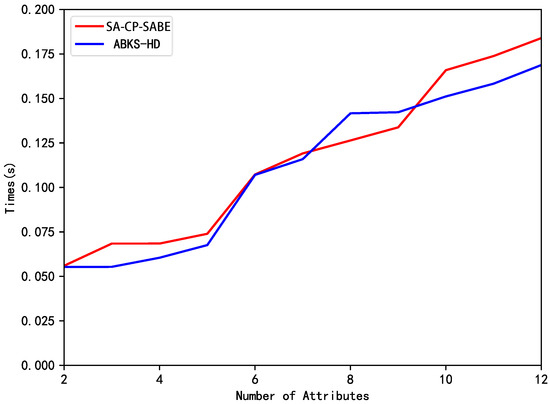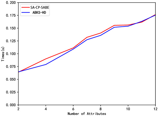 From the analysis above, it can be concluded that the overall performance of the SA-CP-SABE scheme is comparable to that of the ABKS-HD scheme, but it offers higher security.