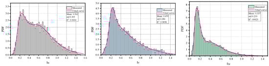 - The complexity of the mountainous valley and the peculiarity of the measurement site profoundly influenced the mean wind characteristics; the blocking effect of the local topography resulted in a higher wind angle of attack and lower mean wind speed from the same direction. Furthermore, the probability distribution of the wind field characteristics agreed with the multimodal lognormal distribution;