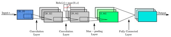 where and are the inputs and outputs of the convolutional layer, and denote the convolutional kernel and bias term of the convolutional layer, respectively, ∗ denotes the convolutional operation, f is the activation function, Maxpooling is the pooling layer, Flatten is the spreading layer, and FC is the fully connected layer.