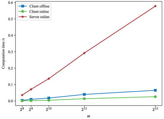 - Implementation and experimentation—the proposed unbalanced PSI protocol and associated smart contracts are realized, and experimental results demonstrate linear dependence of online communication based on clients’ dataset size. Moreover, the transaction cost of executing verification on smart contracts is very low.