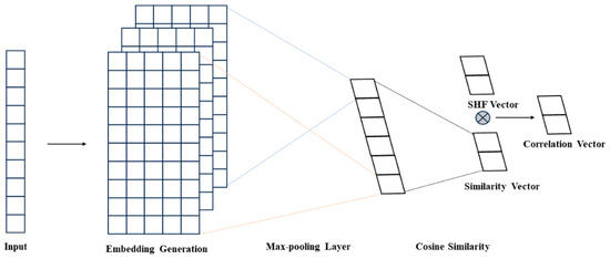 Cosine Similarity: We computed the cosine similarity based on the pooled semantic feature vectors to obtain the semantic similarity vector. The cosine similarity between them can be calculated using Equation (5).