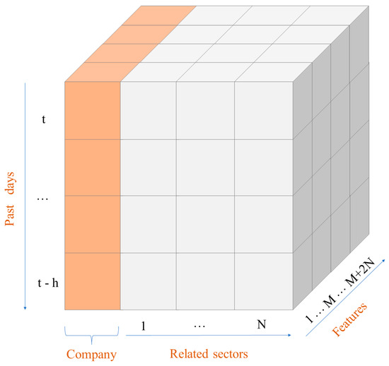 Applying deep learning to the field of financial time series prediction, the selection of model input features is one of the most crucial issues. The choice of input features is directly related to the model’s ability to better learn the inherent correlations between time series. In previous works, the input features of the models typically included stock volume and price data. For instance, Barua and Sharma introduced technical indicators based on market data and used a CNN-BiLSTM model to predict index close prices [12]. Wang, W.Y. et al. constructed multiple input features using price data and selected the optimal combination of input features for prediction [13].